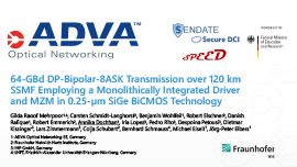 64-GBd DP-Bipolar-8ASK Transmission over 120 km SSMF Employing a Monolithically Integrated Driver and MZM in 0.25-μm SiGe BiCMOS Technology OFC Jörg-Peter Elbers, Benjamin Wohlfeil, Annika Dochhan, Michael Eiselt March 2019 Download slides View published paper (DOI)