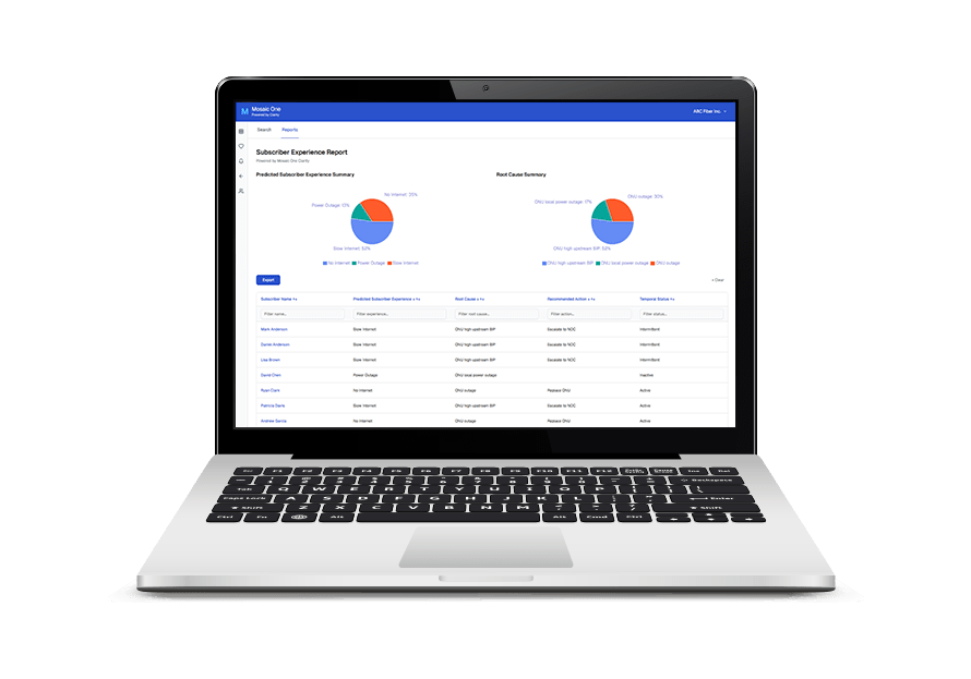 Mosaic One Clarity helps service providers move from reactive troubleshooting to proactive assurance. Built on the REAL AI platform, it unifies network and subscriber data to deliver predictive insights, root cause analysis and guided actions across multi-vendor access and in home environments. Explainable intelligence shows why issues occur so CSRs, NOC engineers and field teams can act with confidence. Clarity integrates with existing workflows and complements Mosaic One Care and Operate, enabling fewer avoidable dispatches, shorter mean time to repair and higher first-time resolution without major infrastructure changes.
